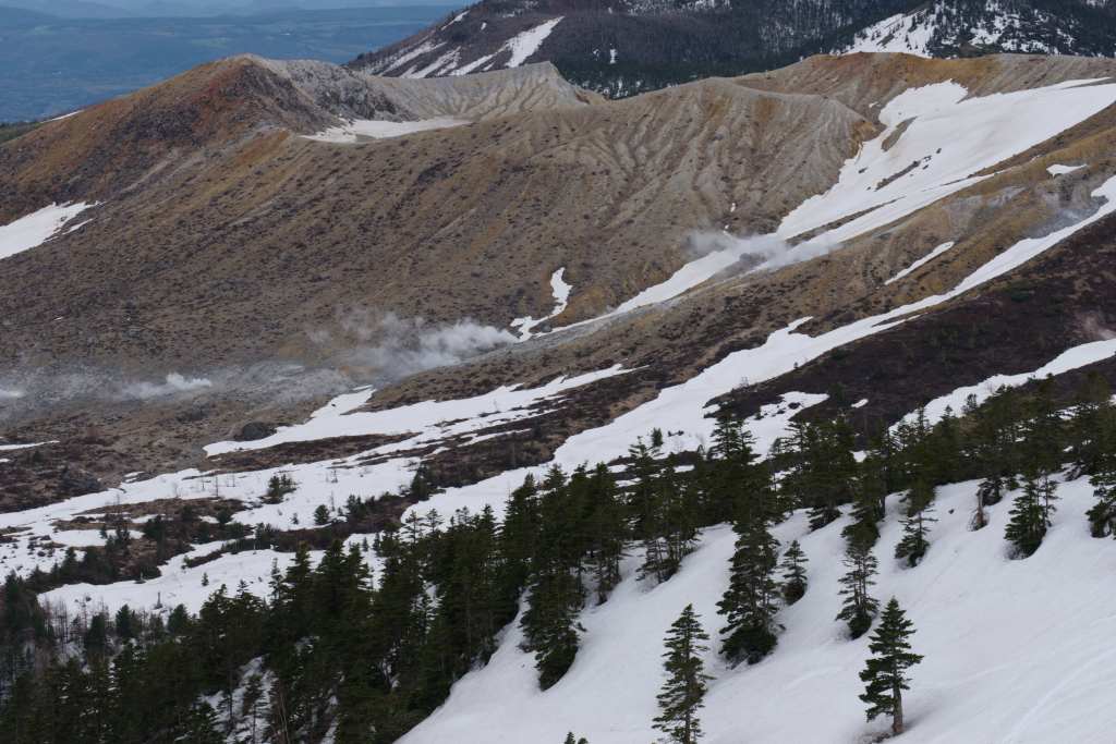 Our route takes us through Lake Chuzenji, where we had celebrated my birthday a week earlier. The weather is closing in, but we still walk a bit in the marsh, now in a mystical mist, and later through Joshinetsu Kogen National Park. We can already spot the Japanese Alps, the peaks still covered in white, waiting for us not to climb them. Unfortunately, we are too early in the season for regular hiking, but we hope to hike at lower elevations.