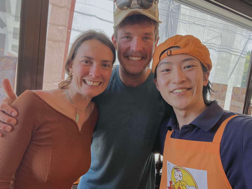 Kyoto is buzzing but we don’t find it to busy. Friends of us visit a few days later than us and report a lot of tourists. I guess we were lucky once more. We sleep on a hill above thei Geisha district and walk down into town. We walk along the philosophers path and multiple temples, visit Nijo castle with its beautiful artistic rooms and end up on pictures of a beauty contest with girls from each region Japans. They speak a bit of English and we talk about our journey. We even bump into a colleague from Hokkaido. The world is small after all. One night we have some very delicious sake at a lovely little hidden bar. We are the only customers and get taught the art of beginners Origami while chatting about life with the lovely girl behind the counter. When we leave Kyoto, we do so with the plan of selling RokkyPokky.