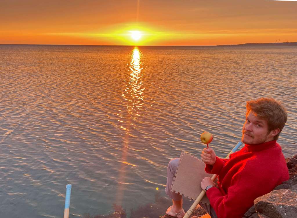 We head north towards the Noto Peninsula. Two rainy days are spent in the beautiful Toyama library before the sun comes back out and we start to drive around the peninsula. Our first highlight along the coast comes in the form of an ice cream sign on the side of the road. We turn back to follow this promising lead and end up with the most delicious ice cream we probably had during our whole stay. Malga Gelato is definitely a recommendation from us; all flavors were delicious, especially Noto salt. A day later, we make ourselves comfortable under a tree at a beach in a small little village and spend most of our day there. On a quest to find drinkable water, Honza meets Yokey. He comes back with water AND a place to eat. Yokey owns a little restaurant and has impressive stories to tell while we eat a delicious katsu curry. He crossed Australia on a scooter. Not a motorized one, just a footboard and a handle!